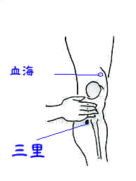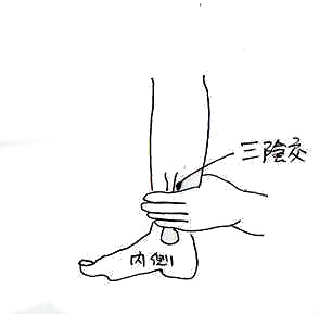 ツボは前脛骨筋にある足の三里付近とくるぶしの内側にある三陰交