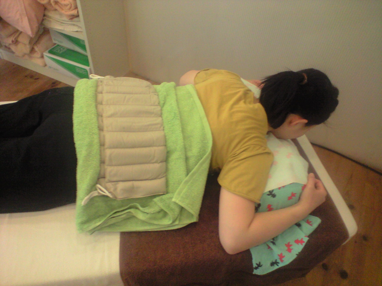 *私の治療院では、慢性の腰痛は、ホットパックで温めてから